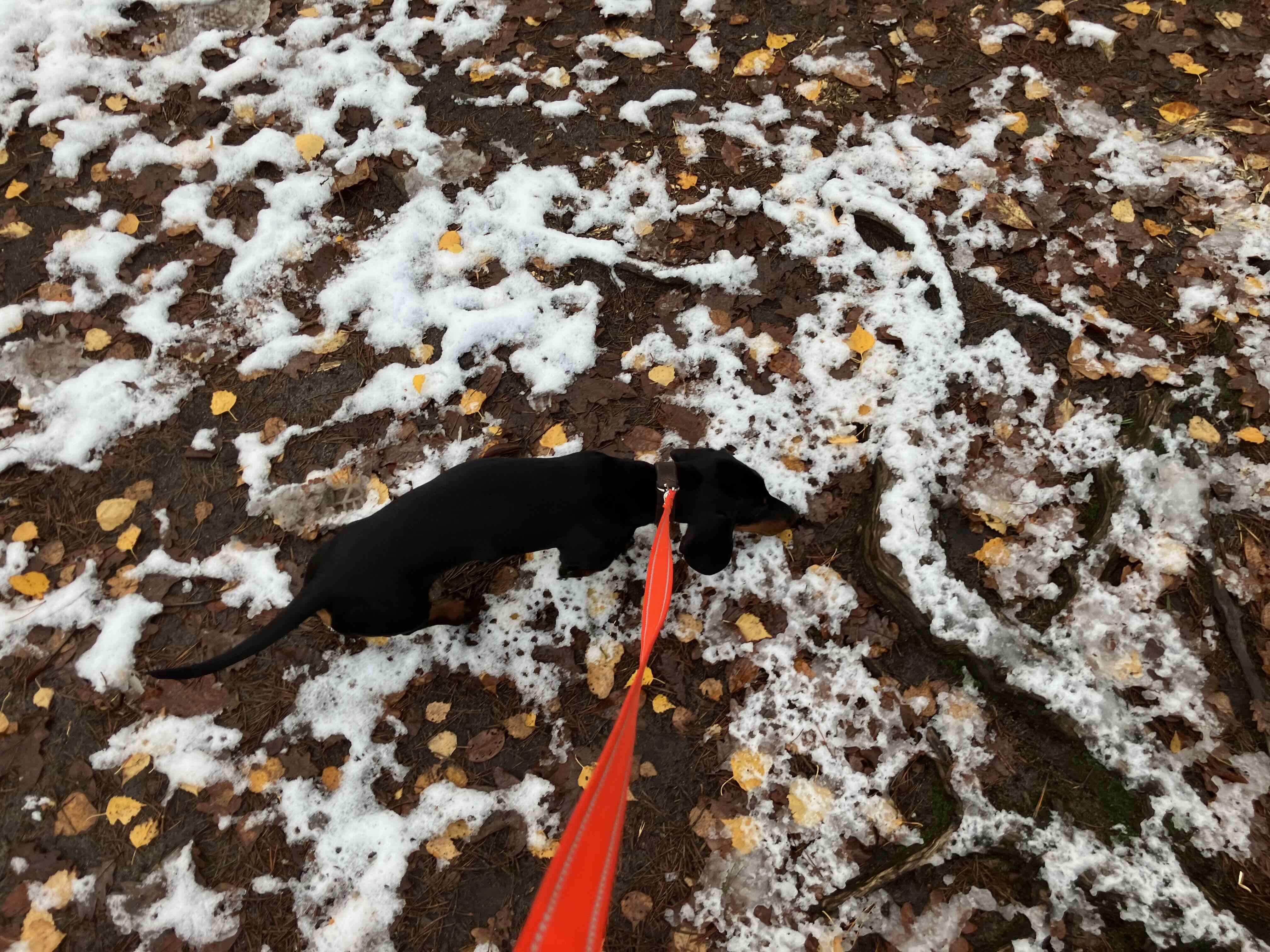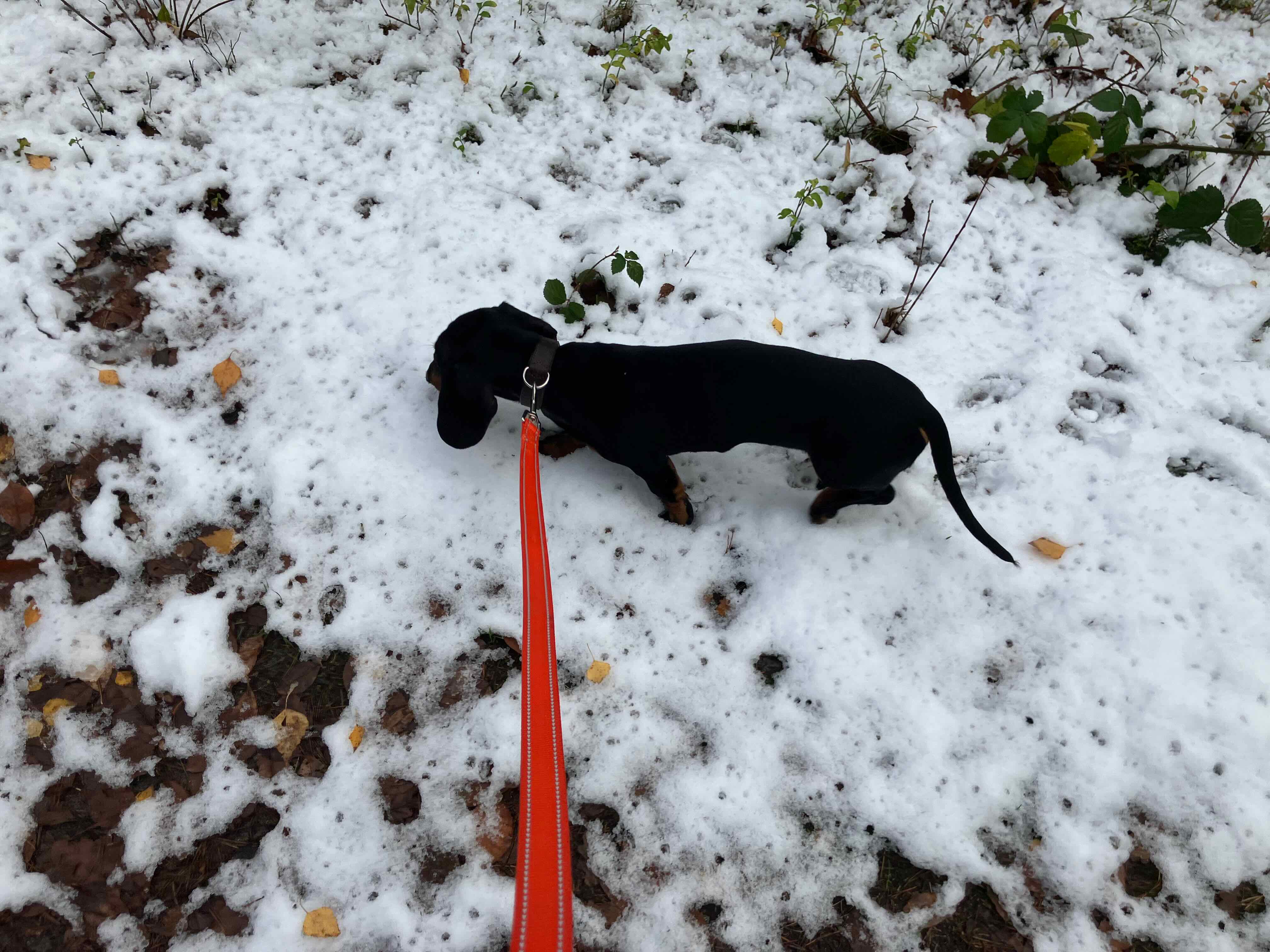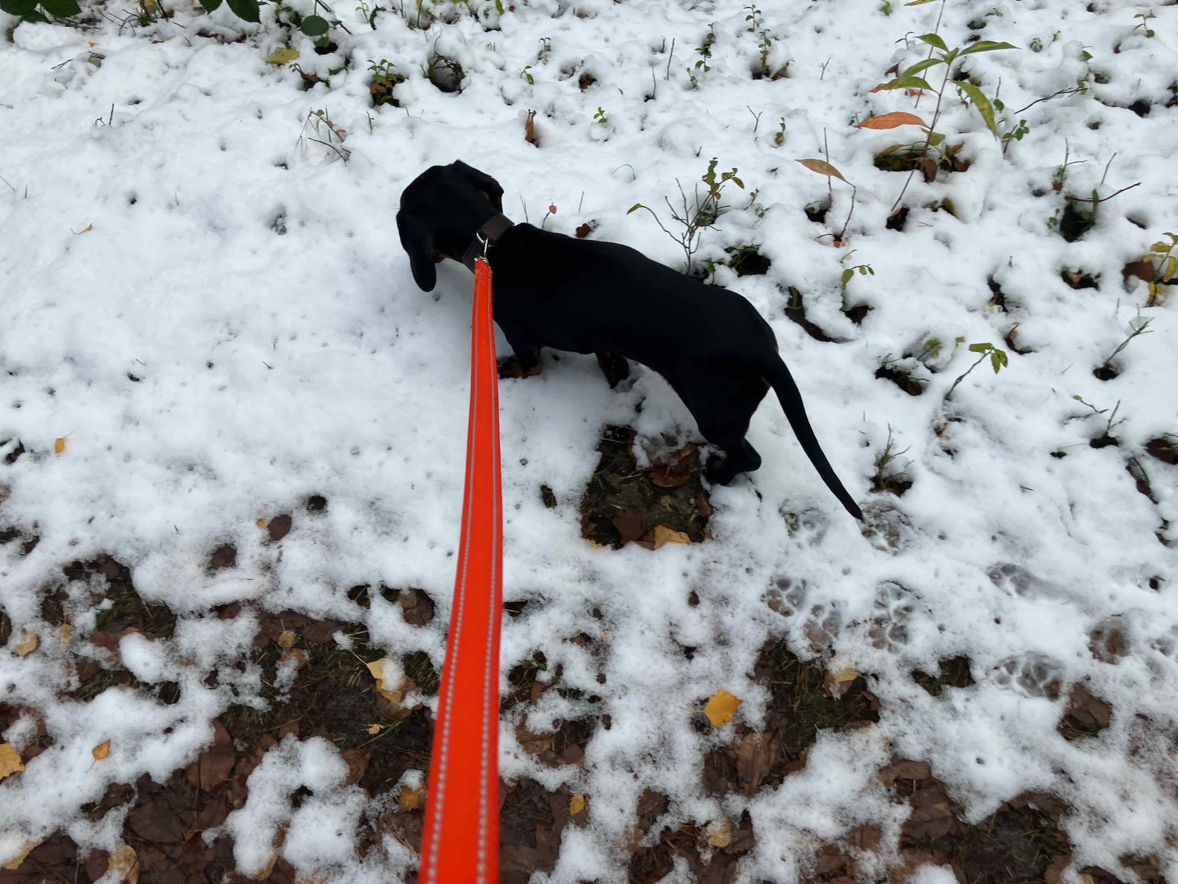 Freddy hat heute zum ersten Mal Schnee gesehen.