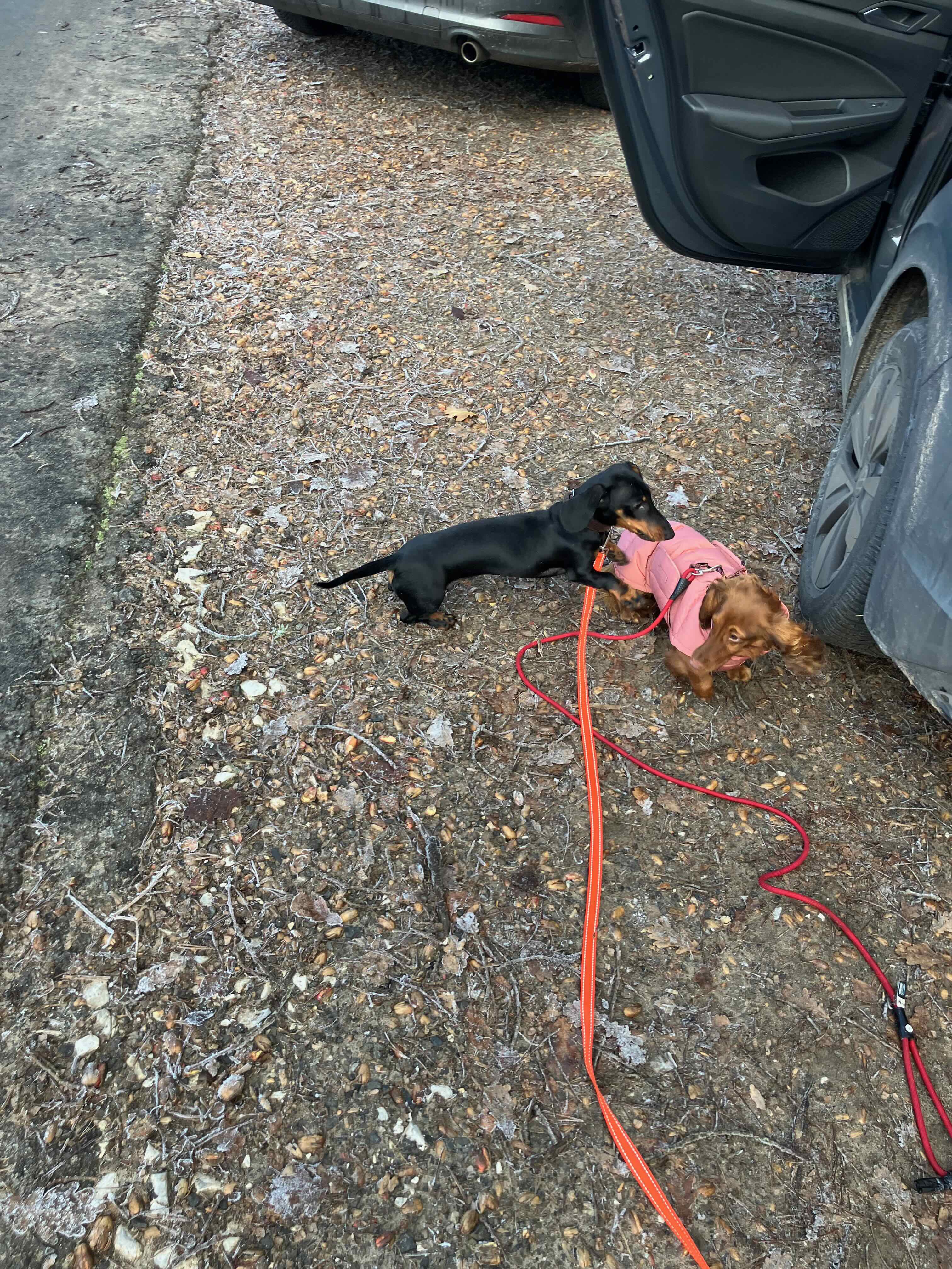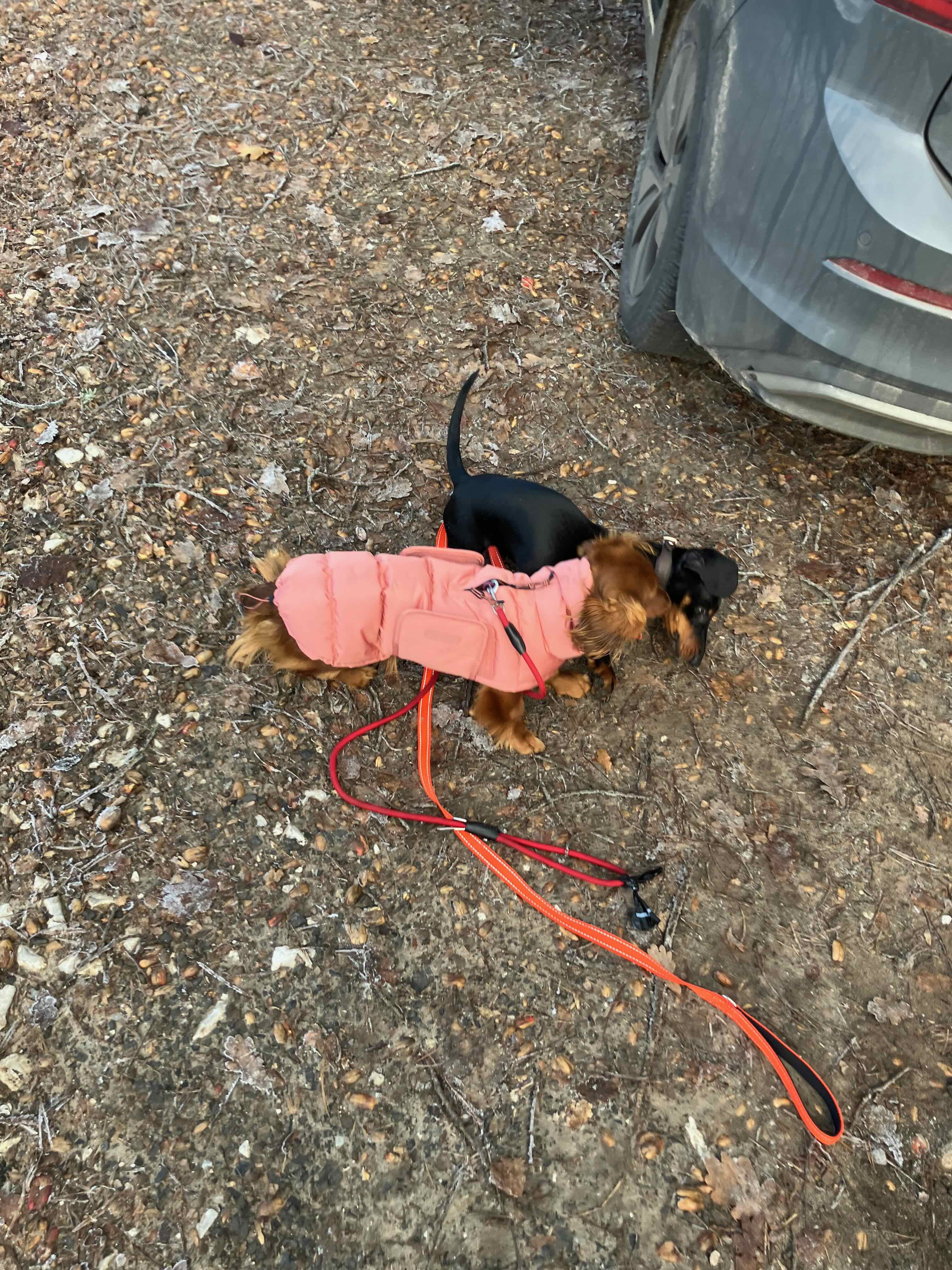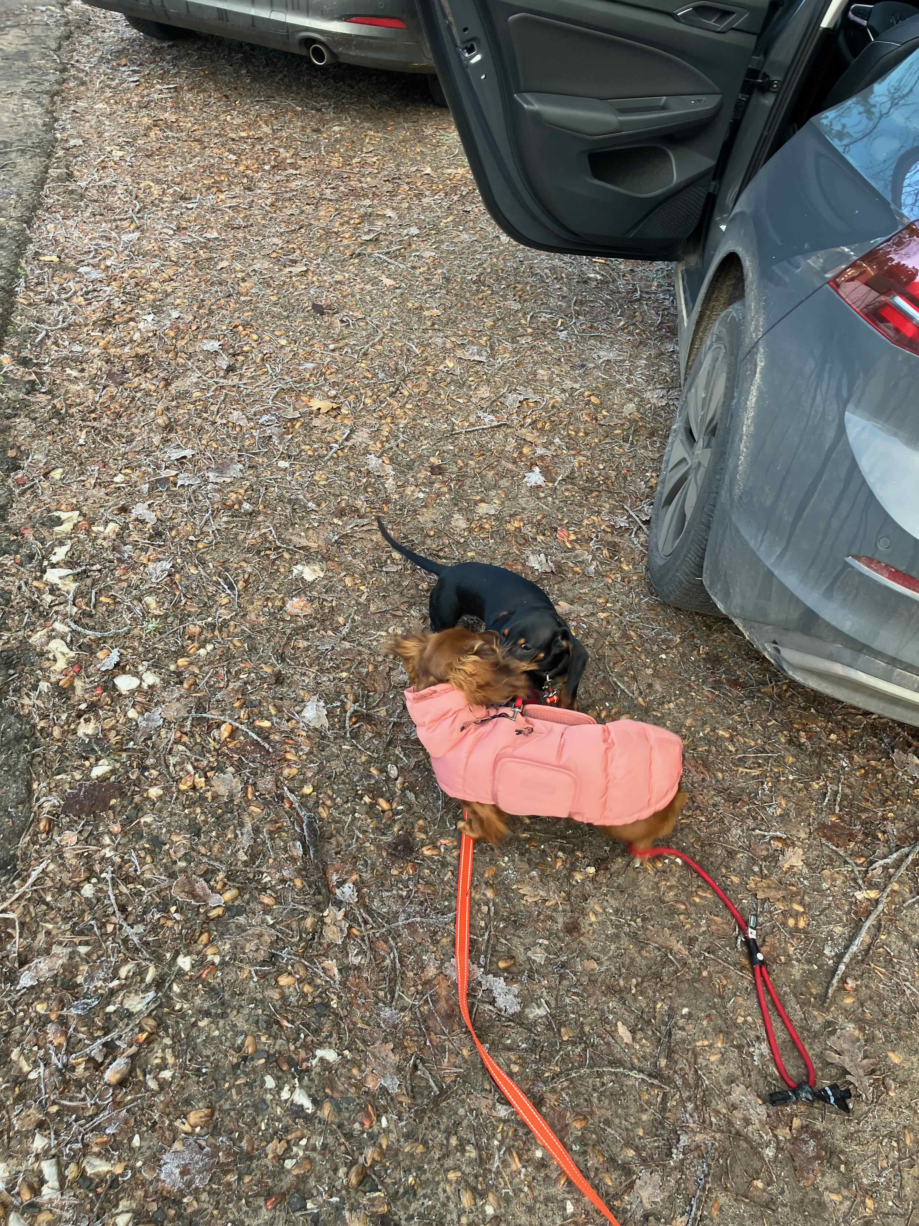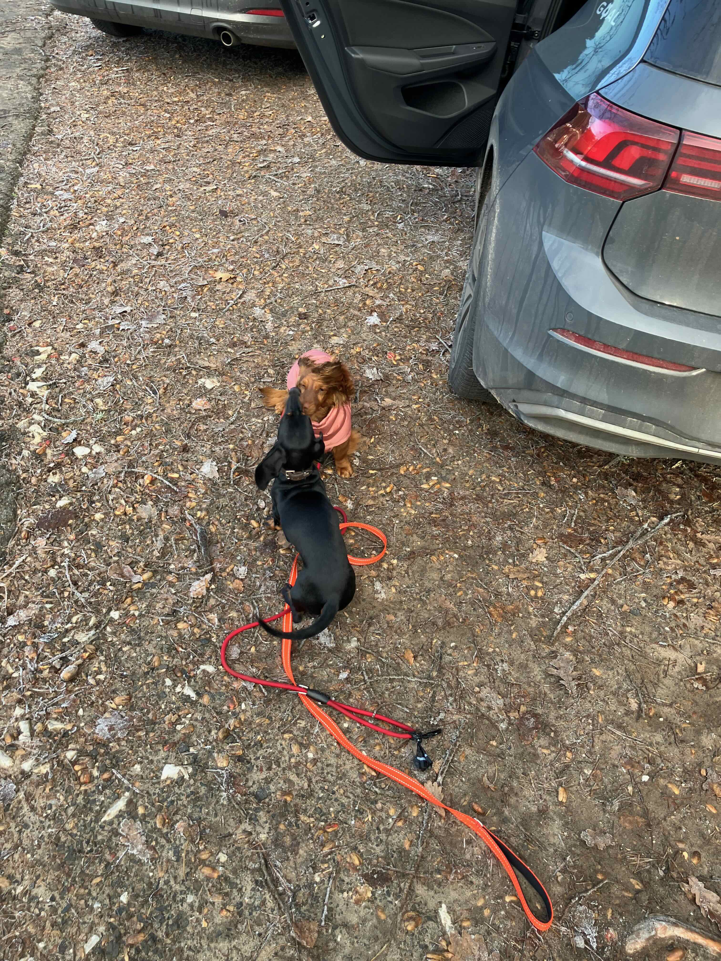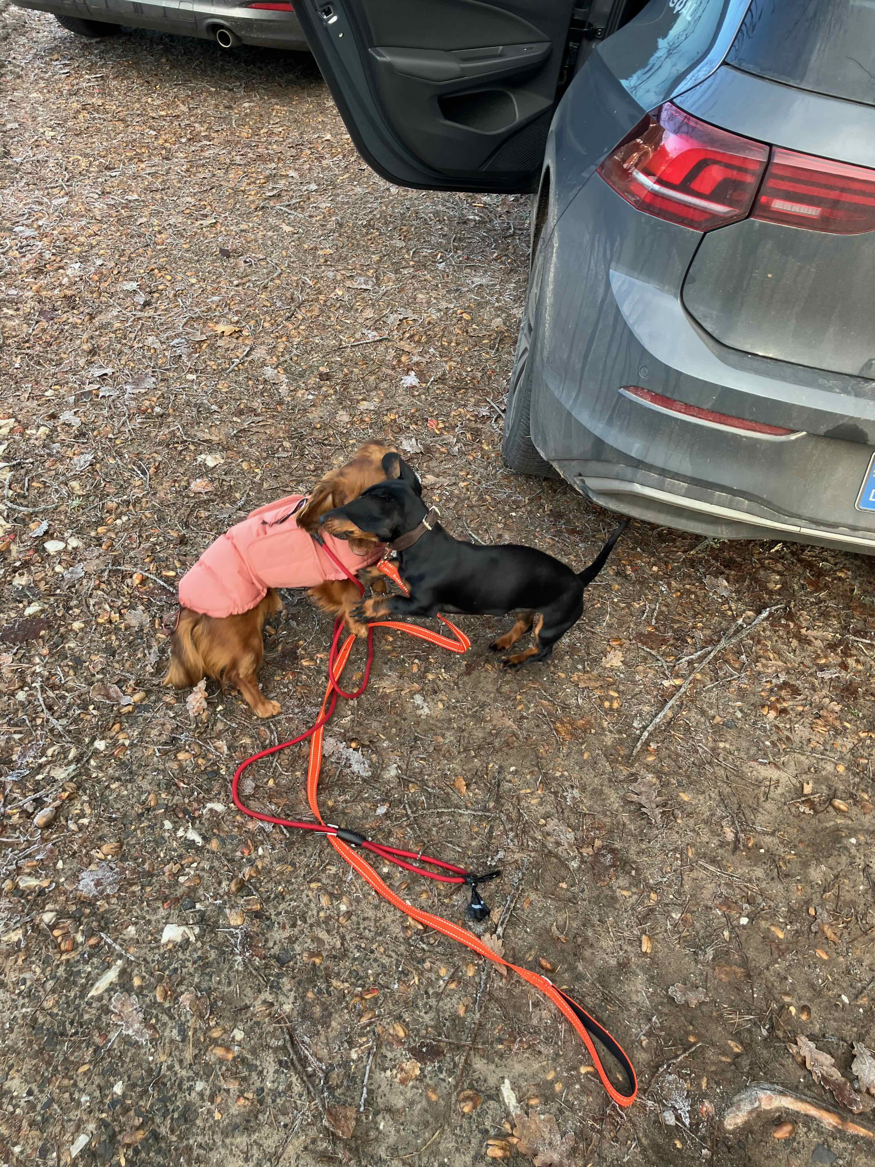 Heute, nach unserem Spaziergang, haben wir eine liebe Dackeldame, 8 Monate, getroffen. Freddy war sofort verliebt.